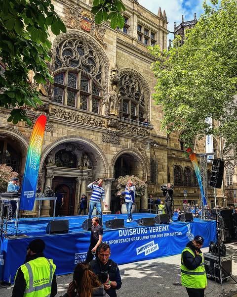 Wir hatten die Ehre die Aufstiegsfeier vor dem Rathaus für die Stadt Duisburg und den MSV technisch komplett auszustatten.