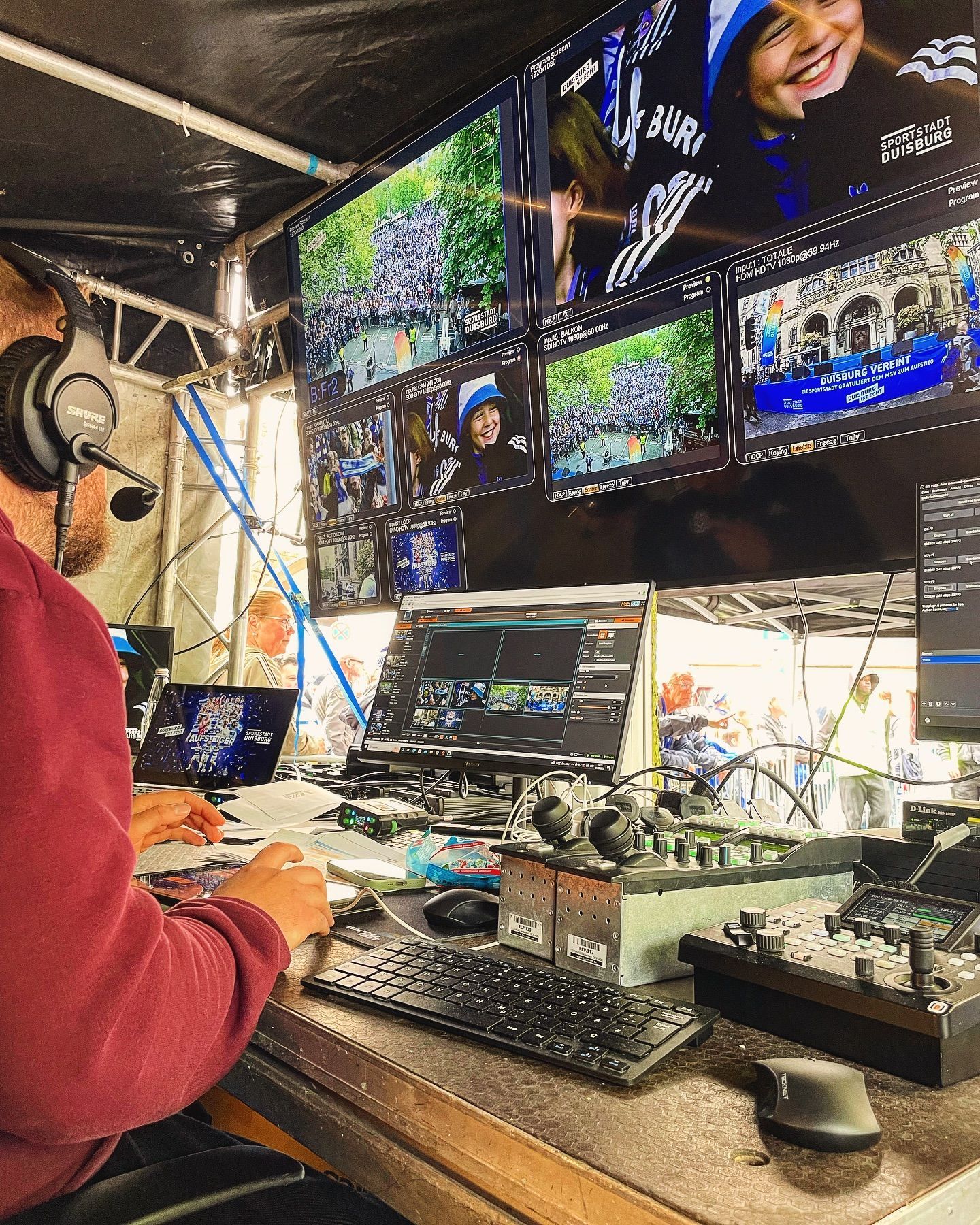 Der Livestream und die Liveübertragung wurde von uns in Zusammenarbeit mit Duisburg Kontor vor Ort mit 5 hochwertigen Kameras und einer mobilen Bildregie geschnitten und produziert.